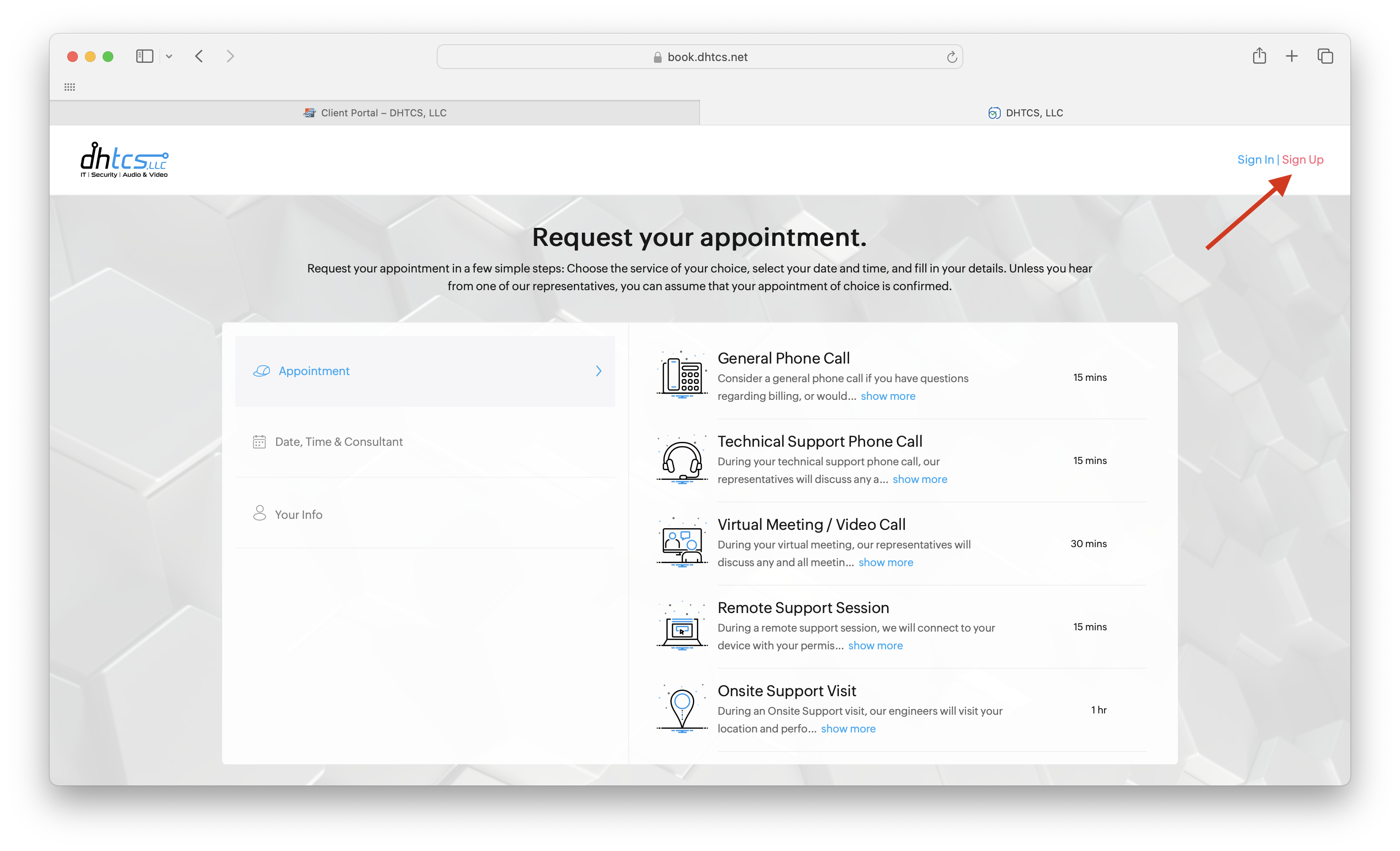While an account isn't required to book appointments, it does allow access to a few other options.