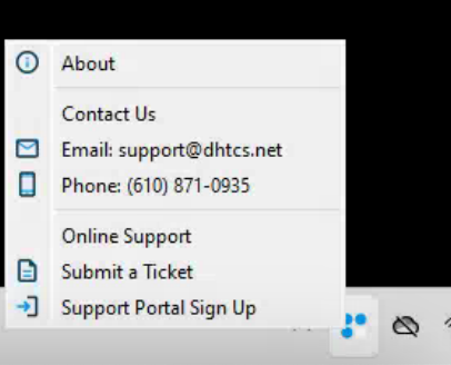 We suggest that when you have any sort of issue, that you report it using the tray icon and selecting "Submit a Ticket". This will direct you to the ticket form where, once filled out, it will submit to our Support Department.
